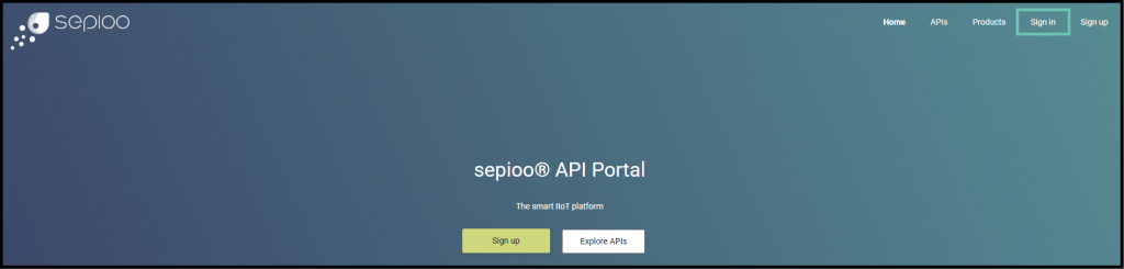 After navigating to the API portal, click on “Sign in” in the top right corner which will redirect you to the sepioo log in page.